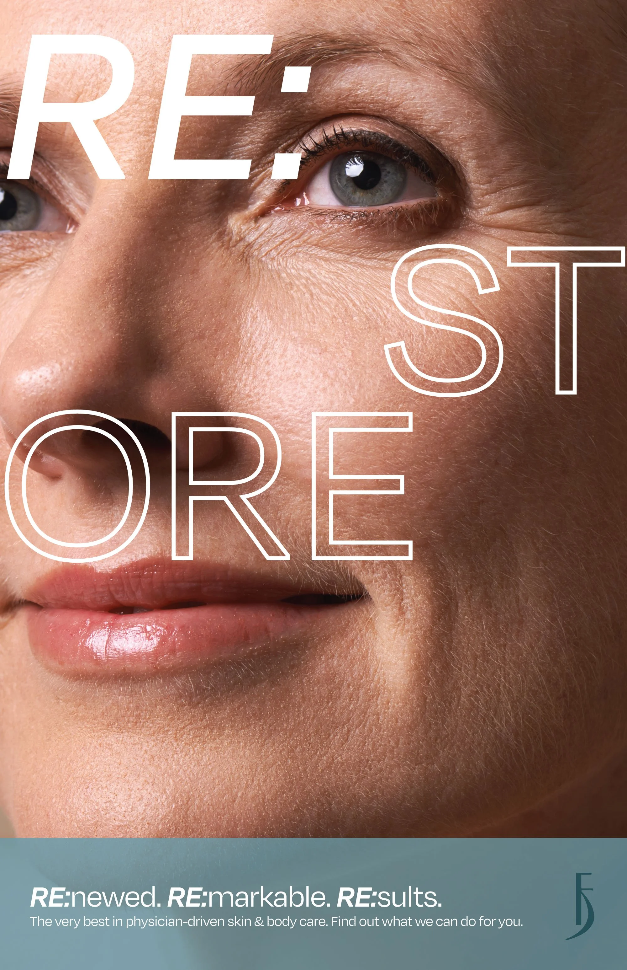The art direction of this campaign is reflective of the language already used in this industry space. During the research phase, several words beginning with the prefix “Re” surfaced frequently. I really took interest in that idea, as the current state of beauty standards tells people everything they need to change about themselves. The intention behind “Re” is to help potential patients become aware of treatments that can help them restore and embrace aspects of their natural beauty, rather than change it.